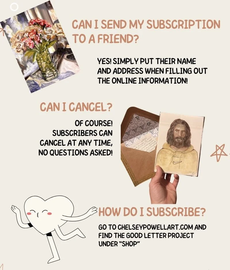 Free Shipping Free Shipping Free Shipping As a special offer, all commissions and purchases will receive free shipping. The price you see is the price you pay!! Thank you in advance for your support!! -Chelsey Categories: All Prints Cards Live Wedding Paintings Originals for sale Check Out Commissions Here! All | Prints | Cards | Live Wedding Paintings | Originals for sale | Check Out Commissions Here! | The Good Letter Project $10.00 every month Fall moon study 5/6 $50.00 Fall moon study 4/6 $50.00 Fall moon study 3/6 $50.00 Fall moon study 2/6 $50.00 Fall moon study 1/6 $50.00 “The overflow” blank card $3.00 Autumn Postcard $3.00 Fall Postcard $3.00 “Hello Beautiful” blank card $3.00 “You are made to Bloom” blank card $3.00 “Peace” blank card $3.00 “You Are So Loved” blank card $3.00 “Joy” blank card $3.00 Mini fridge magnet pet portraits (commissions) $35.00 Paul’s coffee order ❤️ (Print!!!) $15.00 Sketch book rejects (mystery selection😎) $7.00 Watercolor Portraits 5x7 (Commissions & no Frame!) $45.00 Oil painting 18x24 (commission!) $500.00 Pet Portraits 5x5in (Commissions & Frame Included!) $75.00 First Date/House Paintings 5x7in (Commission with no frame!) from $50.00 Broken Ballet $200.00 The Longing Original $100.00 Live wedding Paintings $700.00